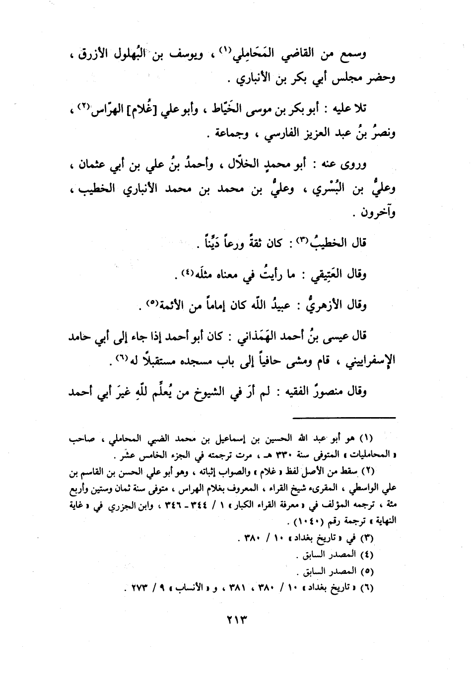 (6) " تاريخ بغداد " 10 / 380، 381، و" الأنساب " 9 / 273.