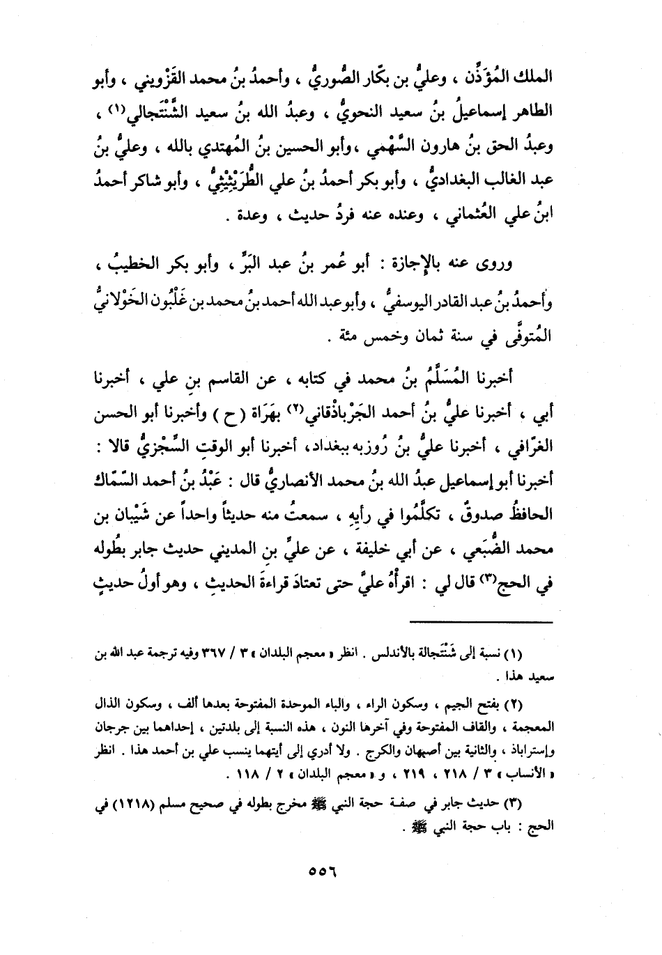 أَخْبَرَنَا المُسَلَّمُ بنُ مُحَمَّدٍ فِي كِتَابِهِ، عَنِ القَاسِمِ بنِ عَلِيٍّ، أَخْبَرَنَا أَبِي، أَخْبَرَنَا عَلِيُّ بنُ أَحْمَدَ الجَرْبَاذْقَانِي (2) بهَرَاة (ح) .