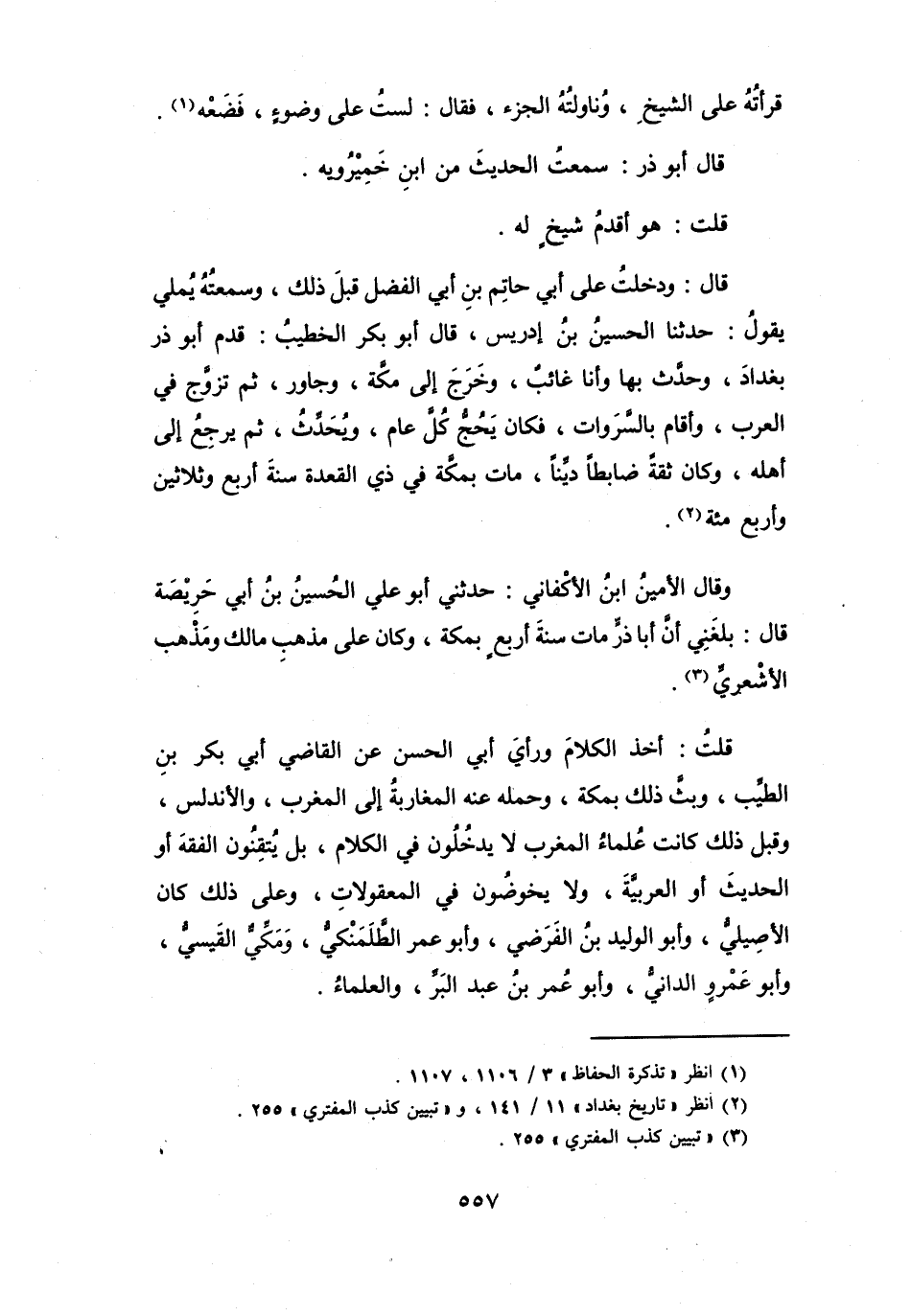 (2) انظر " تاريخ بغداد " 11 / 141، و" تبيين كذب المفتري " 255.