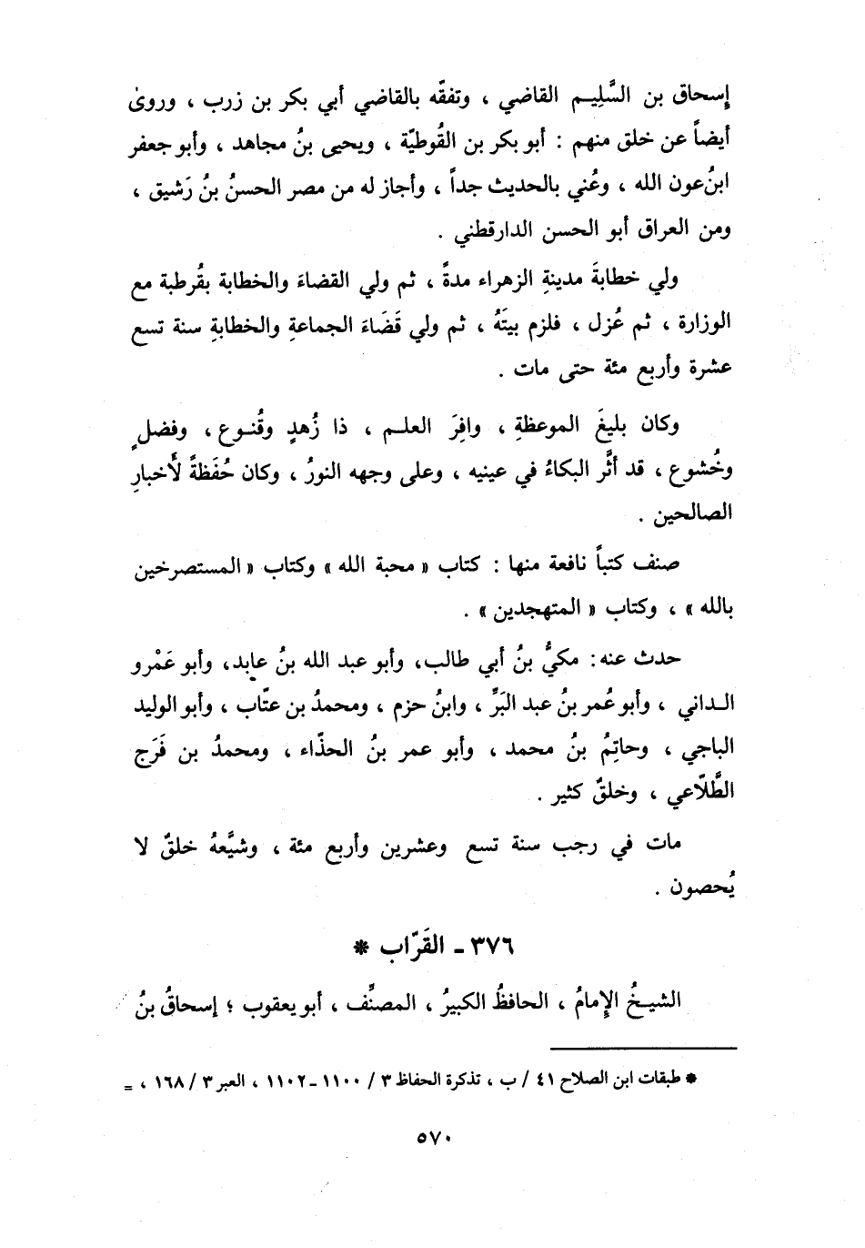 (*) طبقات ابن الصلاح 41 / ب، تذكرة الحفاظ 3 / 1100 - 1102، العبر 3 / 168، =