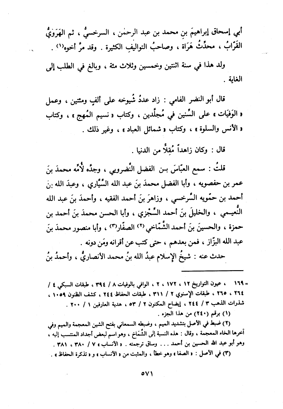 قُلْتُ: سَمِعَ العَبَّاسَ بن الفَضْلِ النَّضرويي، وَجدَّه لأُمِّهِ مُحَمَّدَ بنَ عُمَرَ بن حفصويه، وَأَبَا الفَضْل مُحَمَّدَ بنَ عَبْدِ اللهِ السَّيَّارِي، وَعَبْدَ اللهِ بنَ أَحْمَدَ بنِ حمّويه السَّرَخْسِيّ، وَزَاهِرَ بنَ أَحْمَدَ الفَقِيْه، وَأَحْمَدَ بنَ عَبْدِ اللهِ النُّعَيْمِيّ، وَالخَلِيْلَ بنَ أَحْمَدَ السِّجْزِيّ، وَأَبَا الحَسَنِ مُحَمَّدَ بنَ أَحْمَدَ بن حَمْزَةَ، وَالحُسَيْنَ بنَ أَحْمَدَ الشَّمّاخِي (2) الصَّفَّار (3) ، وَأَبَا مَنْصُوْر مُحَمَّدَ بنَ عَبْدِ اللهِ البَزَّاز، فَمَنْ بَعْدهُم، حَتَّى كتب عَنِ أقرَانه وَمَن دُوْنَهُ.