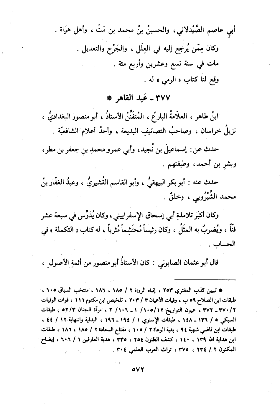 377 - عَبْدُ القَاهِرِ بنُ طَاهِرٍ أَبُو مَنْصُوْرٍ البَغْدَادِيُّ *