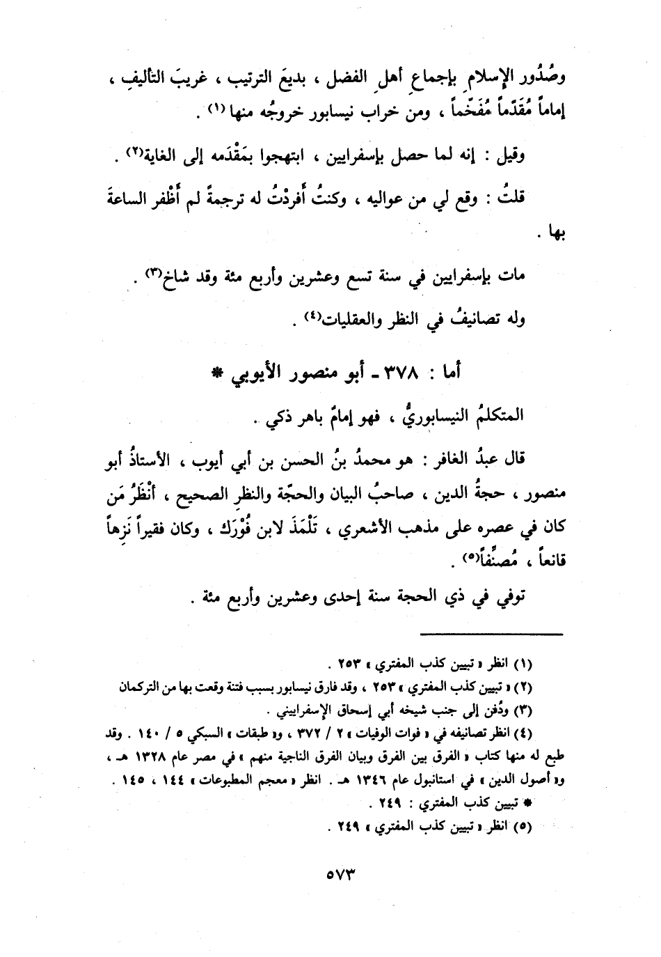 (2) " تبيين كذب المفتري " 253، وقد فارق نيسابور بسبب فتنة وقعت بها من التركمان