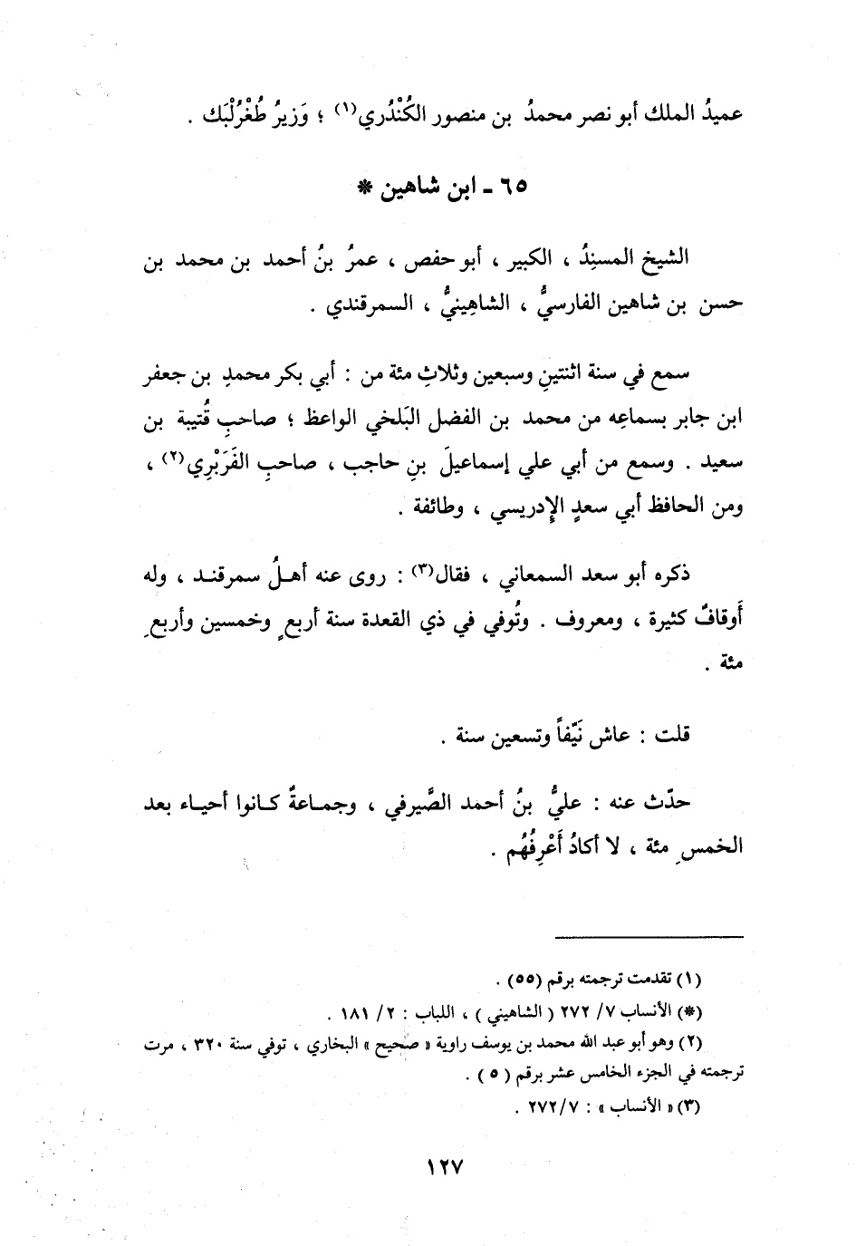 65 - ابْنُ شَاهِيْنٍ عُمَرُ بنُ أَحْمَدَ بنِ مُحَمَّدٍ الفَارِسِيُّ *