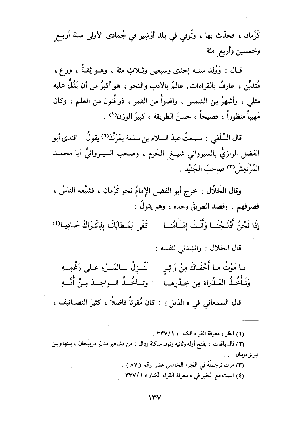 (4) البيت مع الخبر في " معرفة القراء الكبار " 1 / 337.
