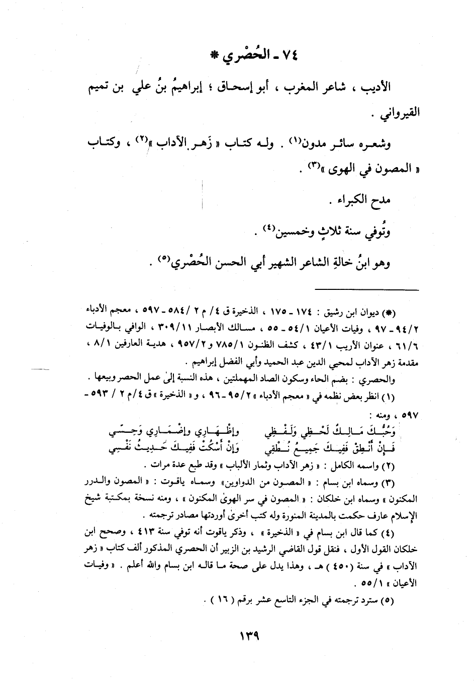 74 - الحُصْرِيُّ أَبُو إِسْحَاقَ إِبْرَاهِيْمُ بنُ عَلِيِّ بنِ تَمِيْمٍ *