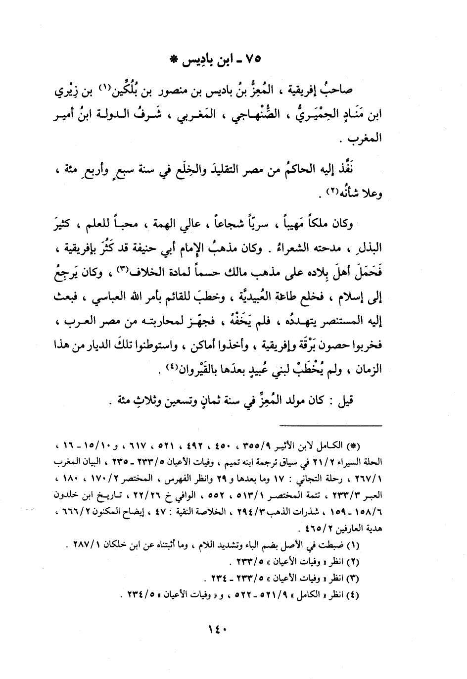 75 - ابْنُ بَادِيْسَ المُعِزُّ بنُ بَادِيْسَ بنِ مَنْصُوْرٍ الحِمْيَرِيُّ *