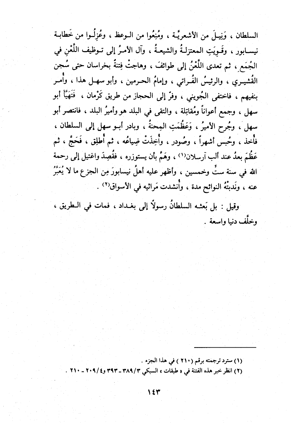 (2) انظر خبر هذه الفتنة في " طبقات " السبكي 3 / 389 - 393 و4 / 209 - 210.