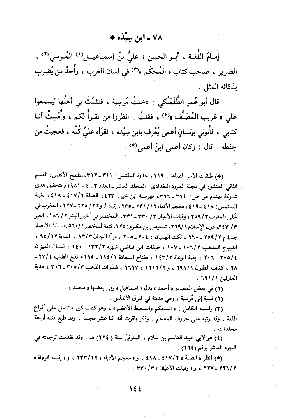78 - ابْنُ سِيْدَه أَبُو الحَسَنِ عَلِيُّ بنُ إِسْمَاعِيْلَ المُرْسِيُّ *