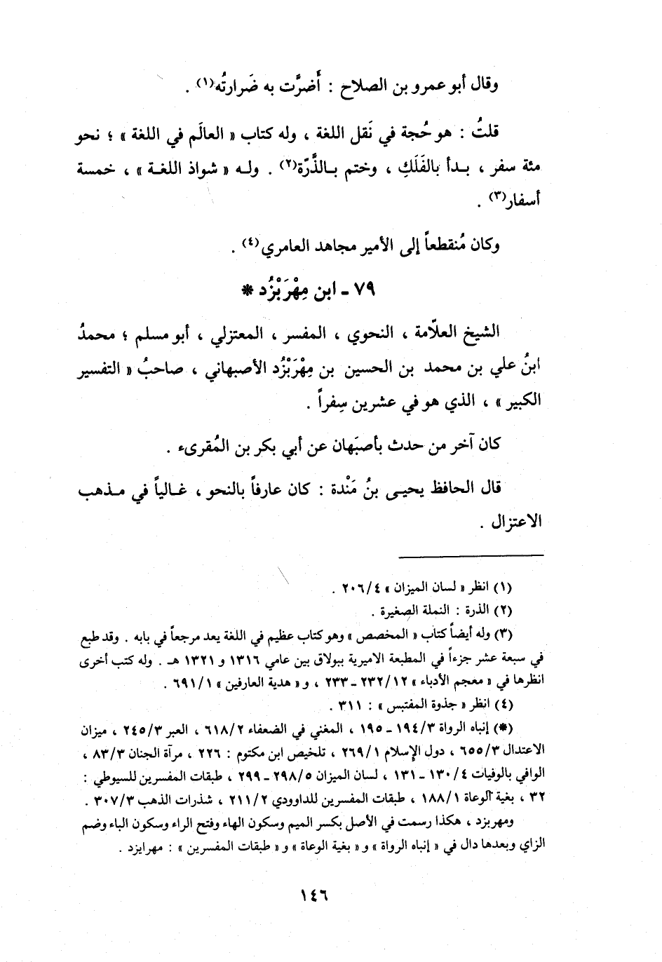 ومهربزد، هكذا رسمت في الأصل بكسر الميم وسكون الهاء وفتح الراء وسكون الباء وضم الزاي وبعدها دال في " إنباه الرواة " و" بغية الوعاة " و" طبقات المفسرين ": مهرايزد.