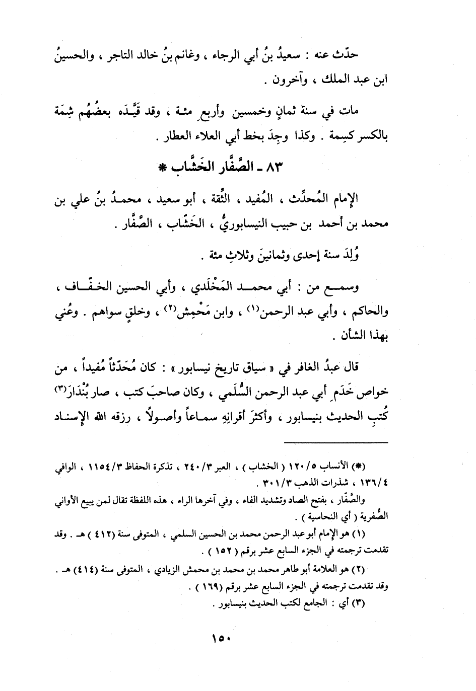 (*) الأنساب 5 / 120 (الخشاب) ، العبر 3 / 240، تذكرة الحفاظ 4 / 1154، الوافي 4 / 136، شذرات الذهب 3 / 301.
