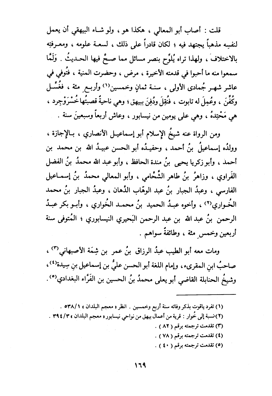 قُلْتُ: أَصَاب أَبُو المَعَالِي، هَكَذَا هُوَ، وَلَوْ شَاءَ البَيْهَقِيّ أَنْ يَعمل لِنَفْسِهِ مَذْهَباً يَجتهد فِيْهِ؛ لَكَانَ قَادِراً عَلَى ذَلِكَ، لسعَة علُوْمه، وَمَعْرِفَته بِالاخْتِلاَف، وَلِهَذَا ترَاهُ يُلوِّح بِنَصْر مَسَائِل مِمَّا صَحَّ فِيْهَا الحَدِيْثُ.