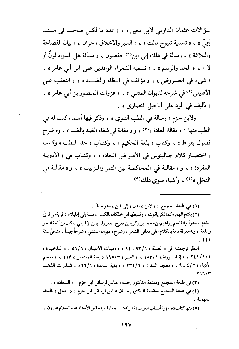 سُؤَالاَت عُثْمَان الدَّارِمِيّ لابْنِ مَعِيْنٍ) ، (عدد مَا لِكُلِّ صَاحِب فِي مُسند بَقِيّ) ، (تسمِيَة شُيُوْخ مَالِك) ، (السِّير وَالأَخلاَق) جُزآن (بيَان الفَصَاحَة وَالبلاغَة) رِسَالَة فِي ذَلِكَ إِلَى ابْنِ (1) حَفْصُوْنَ (مَسْأَلَة هَلِ السَّوَاد لُوْنٌ أَوْ لاَ) ، (الحدّ وَالرَّسم) ، (تسمِيَة الشُّعَرَاء الوَافدين عَلَى ابْنِ أَبِي عَامِرٍ) ، (شَيْء فِي الْعرُوض) ، (مُؤَلّف فِي الظَّاء وَالضَاد) ، (التَّعقب عَلَى الأَفليلِي (2) فِي شَرحه لديوَان المتنبِّي) ، (غَزَوَات المَنْصُوْر بن أَبِي عَامِرٍ) ، (تَألِيف فِي الرَّدِّ عَلَى أَنَاجيل النَّصَارَى) .