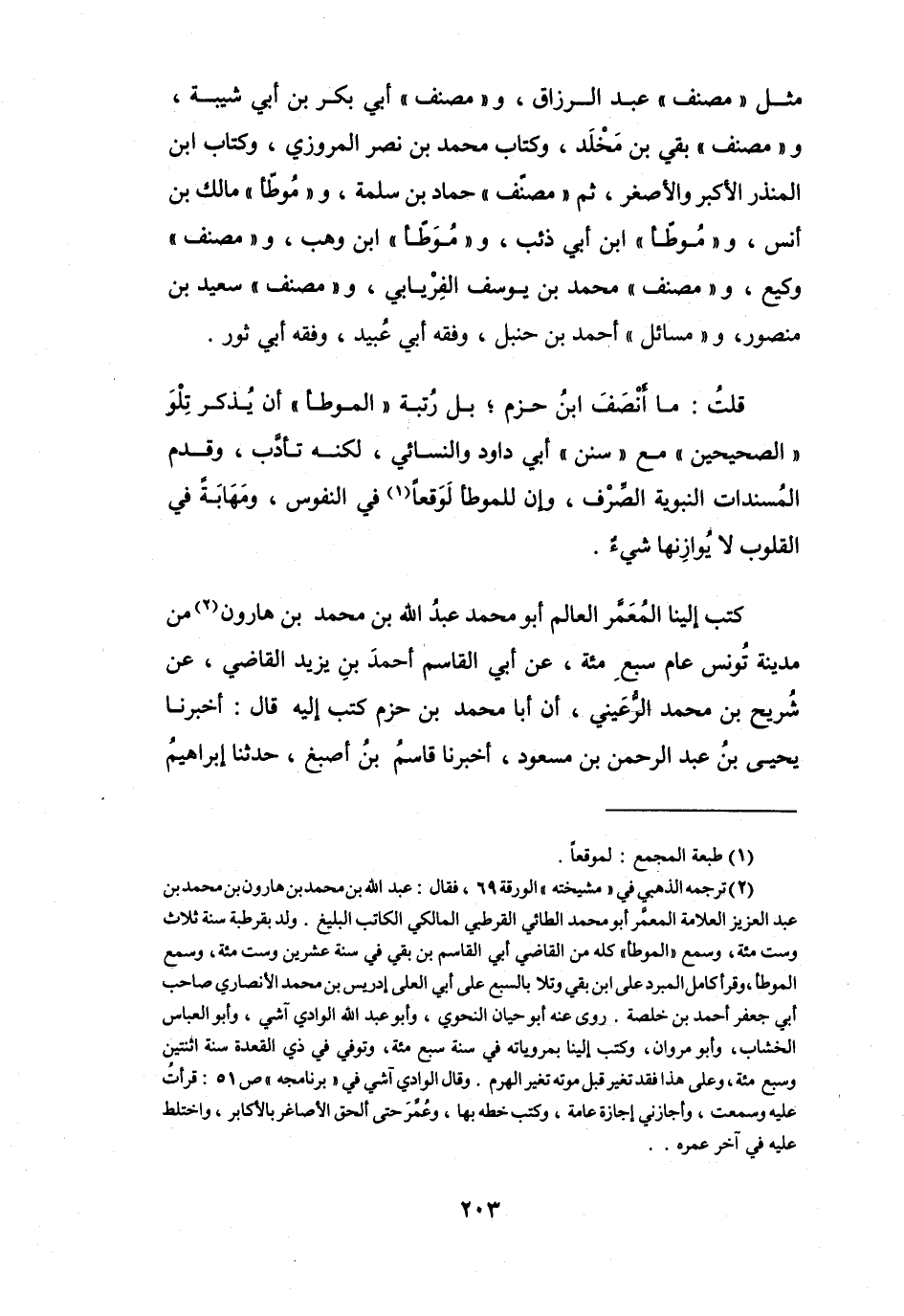 قُلْتُ: مَا أَنْصَفَ ابْنُ حَزْمٍ؛ بَلْ رُتْبَة (المُوَطَّأ) أَنْ يُذكر تِلْوَ (الصَّحِيْحَيْنِ) مَعَ (سُنَن أَبِي دَاوُدَ وَالنَّسَائِيّ) ، لَكنَّه تَأَدَّبَ، وَقَدَّمَ المُسْنَدَات النّبويَّة الصِّرْف، وَإِنَّ (لِلموطَّأ) لَوَقْعاً (1) فِي النُّفُوْسِ، وَمَهَابَةً فِي القُلوب لاَ يُوَازِنهَا شَيْءٌ.