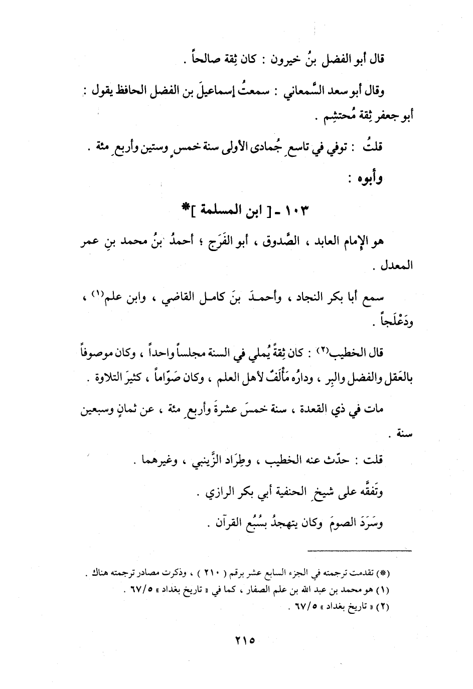 (2) " تاريخ بغداد " 5 / 67 (*) .