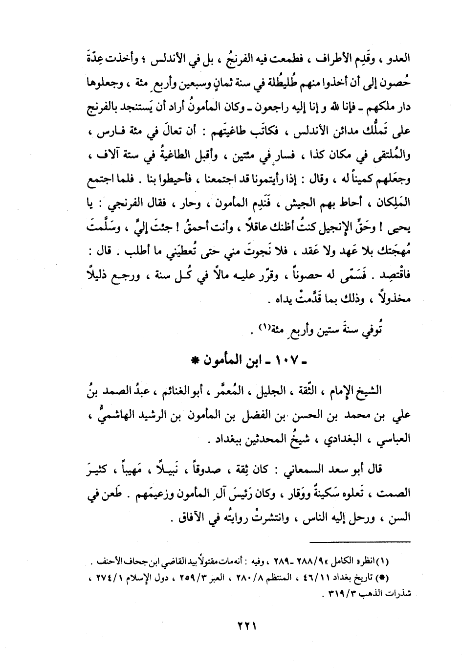 (*) تاريخ بغداد 11 / 46، المنتظم 8 / 280، العبر 3 / 259، دول الإسلام 1 / 274، شذرات الذهب 3 / 319.