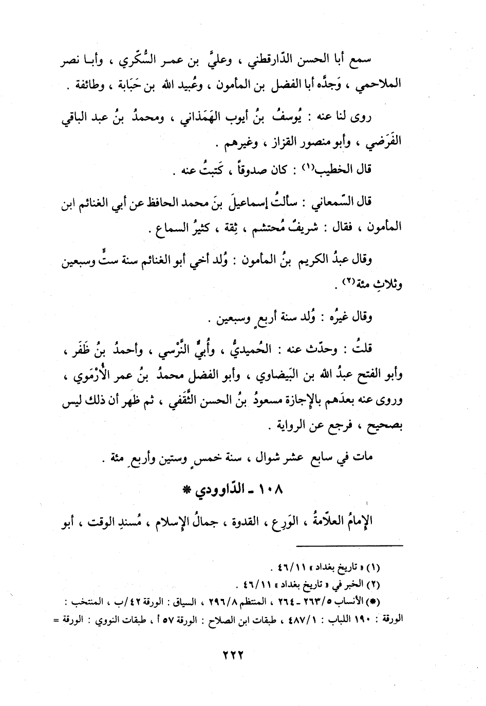 108 - الدَّاوُوْدِيُّ عَبْدُ الرَّحْمَنِ بنُ مُحَمَّدِ بنِ المُظَفَّرِ *