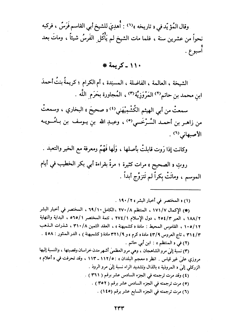 110 - كَرِيْمَةُ أُمّ الكِرَامِ بِنْتُ أَحْمَدَ بنِ مُحَمَّدٍ المَرْوَزِيَّةُ *
