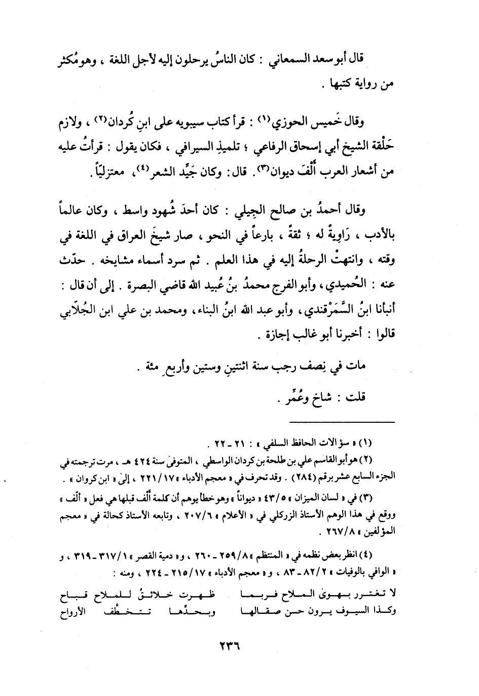 (3) في " لسان الميزان " 5 / 43 " ديوانا " وهو خطأ يوهم أن كلمة ألف قبلها هي فعل " ألف " ووقع في هذا الوهم الأستاذ الزركلي في " الاعلام " 6 / 207، وتابعه الأستاذ كحالة في " معجم المؤلفين " 8 / 267.