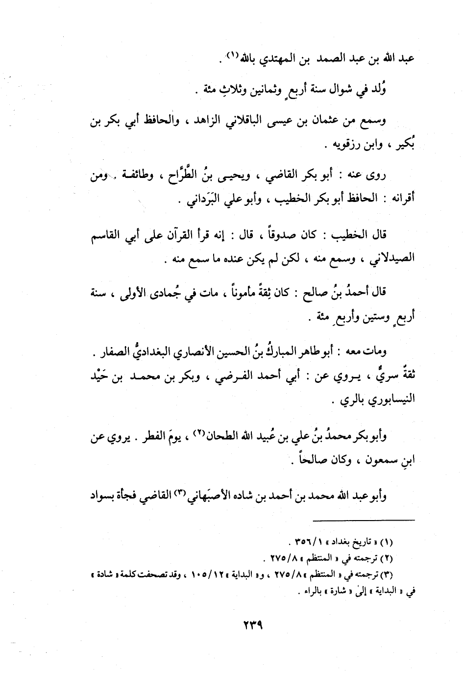 (3) ترجمته في " المنتظم " 8 / 275، و" البداية " 12 / 105، وقد تصحفت كلمة " شادة " في " البداية " إلى " شارة " بالراء.