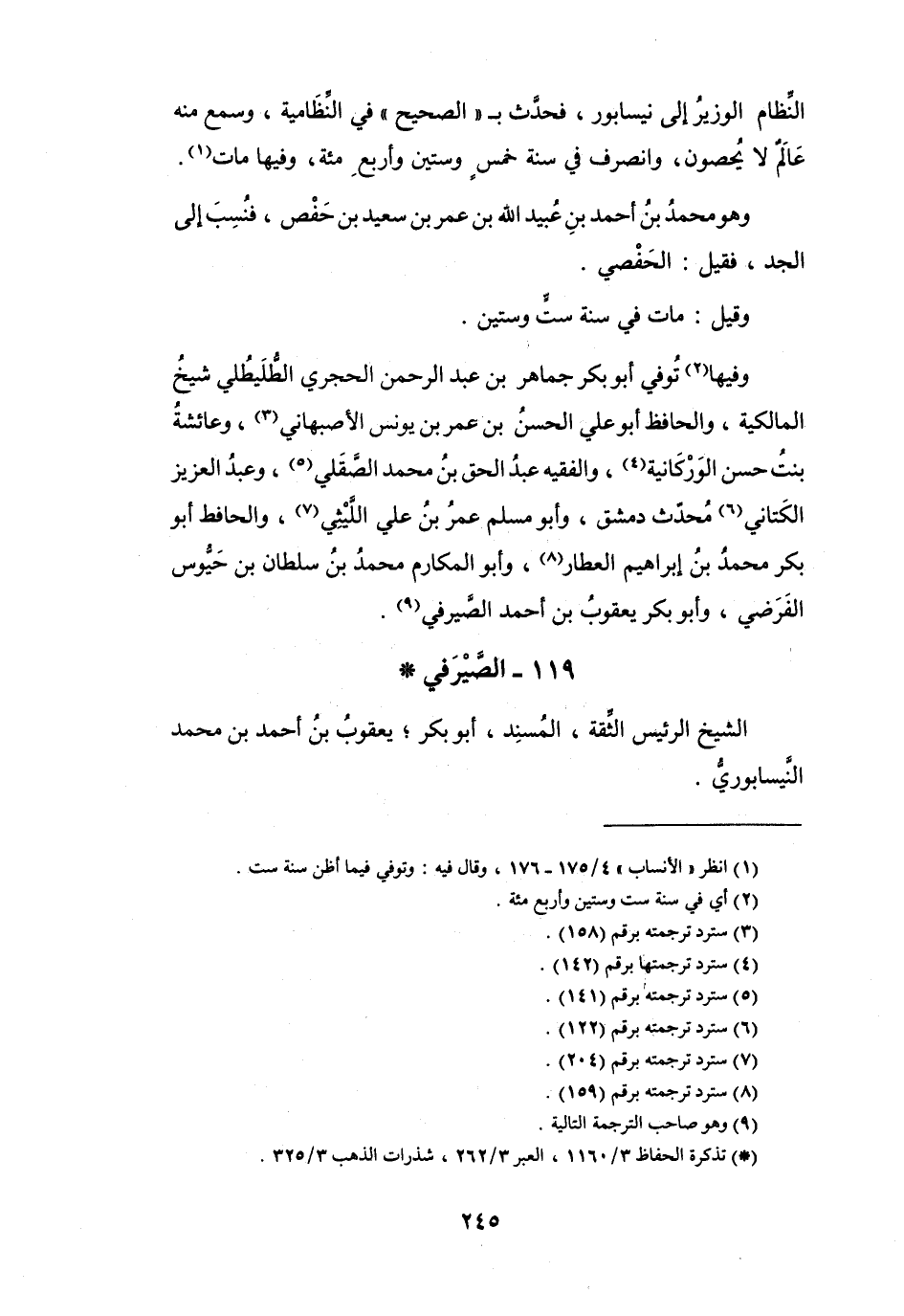 119 - الصَّيْرَفِيُّ أَبُو بَكْرٍ يَعْقُوْبُ بنُ أَحْمَدَ بنِ مُحَمَّدٍ *
