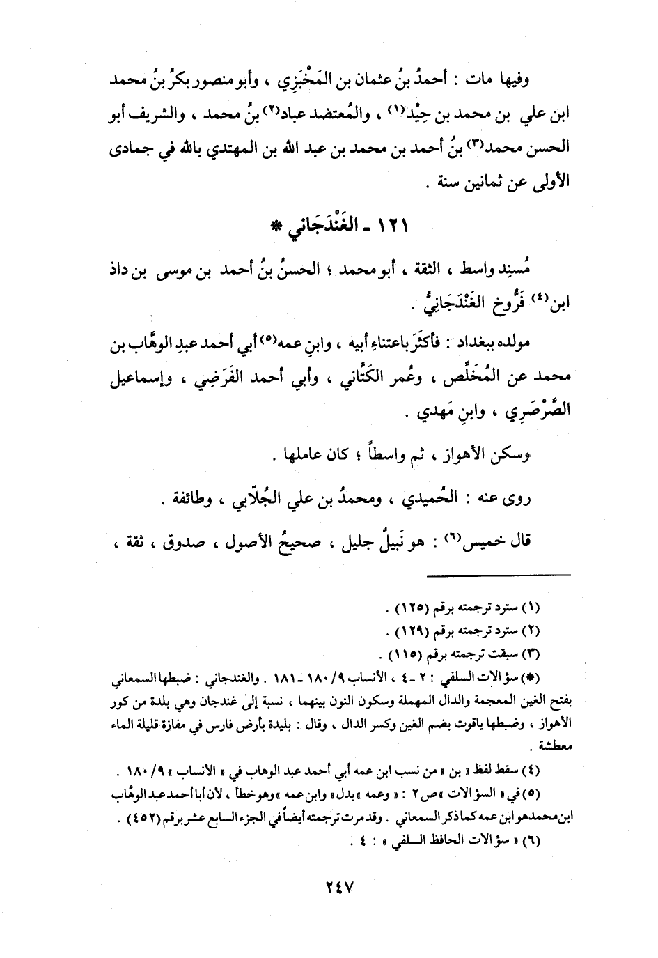 121 - الغَنْدَجَانِيُّ الحَسَنُ بنُ أَحْمَدَ بنِ مُوْسَى بنِ دَاذَ *