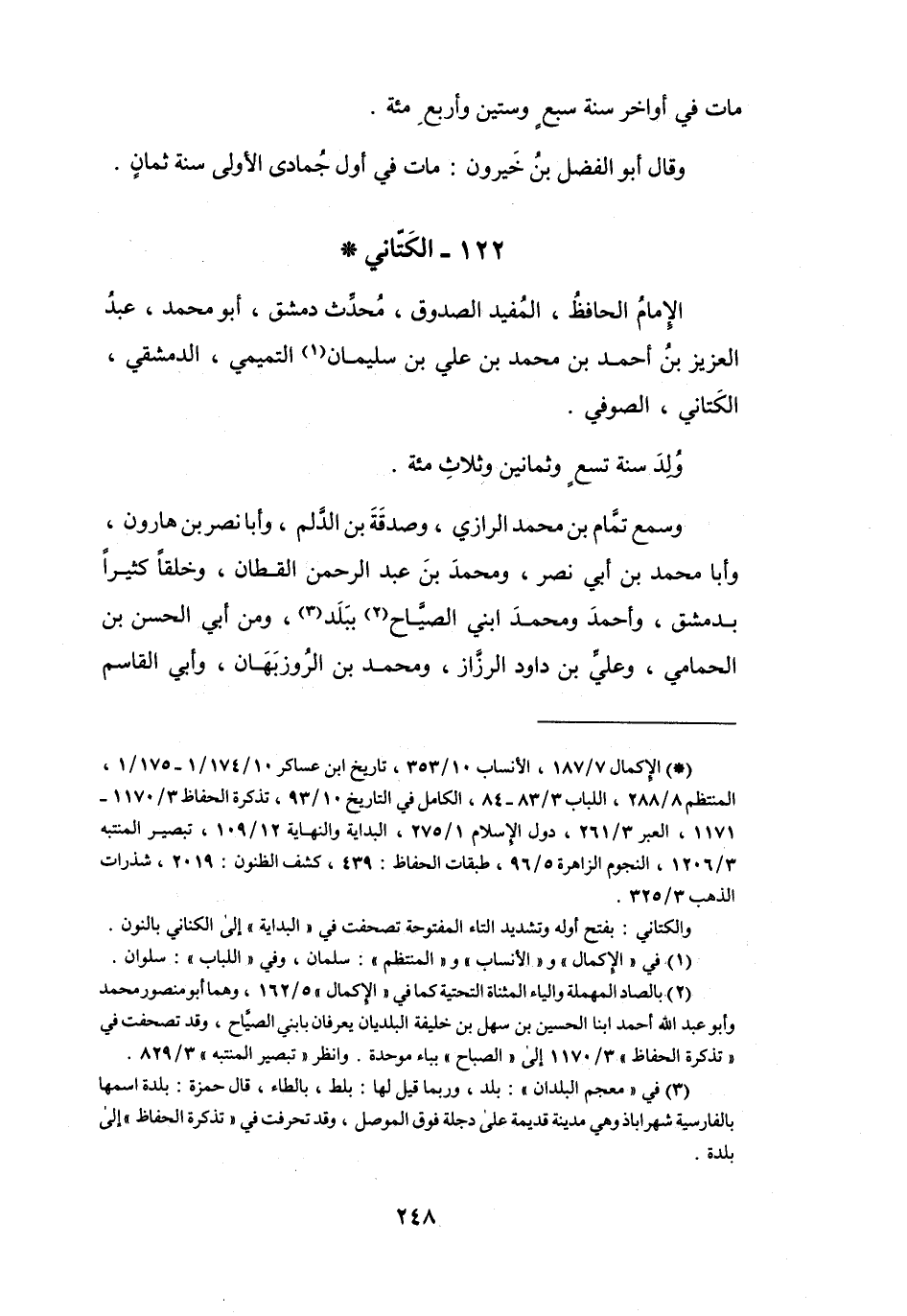 الإِمَامُ، الحَافِظُ، المُفِيدُ، الصَّدُوْقُ، مُحَدِّثُ دِمَشْقَ، أَبُو مُحَمَّدٍ عَبْدُ العَزِيْزِ بنُ أَحْمَدَ بنِ مُحَمَّدِ بنِ عَلِيِّ بنِ سُلَيْمَانَ (1) التَّمِيْمِيُّ، الدِّمَشْقِيُّ، الكَتَّانِي، الصُّوْفِيُّ.