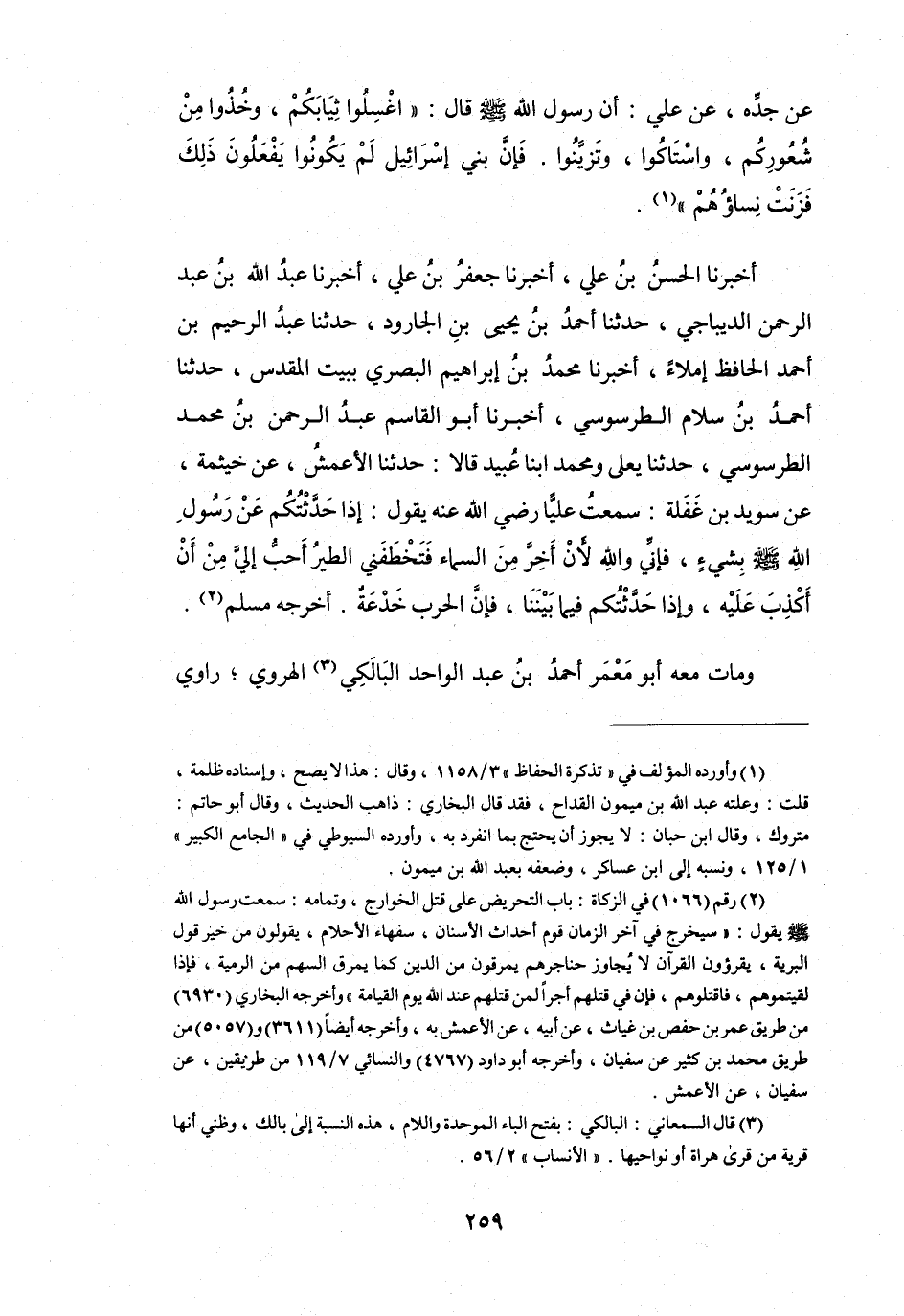 (3) قال السمعاني: البالكي: بفتح الباء الموحدة واللام، هذه النسبة إلى بالك، وظني أنها قرية من قرى هراة أو نواحيها.