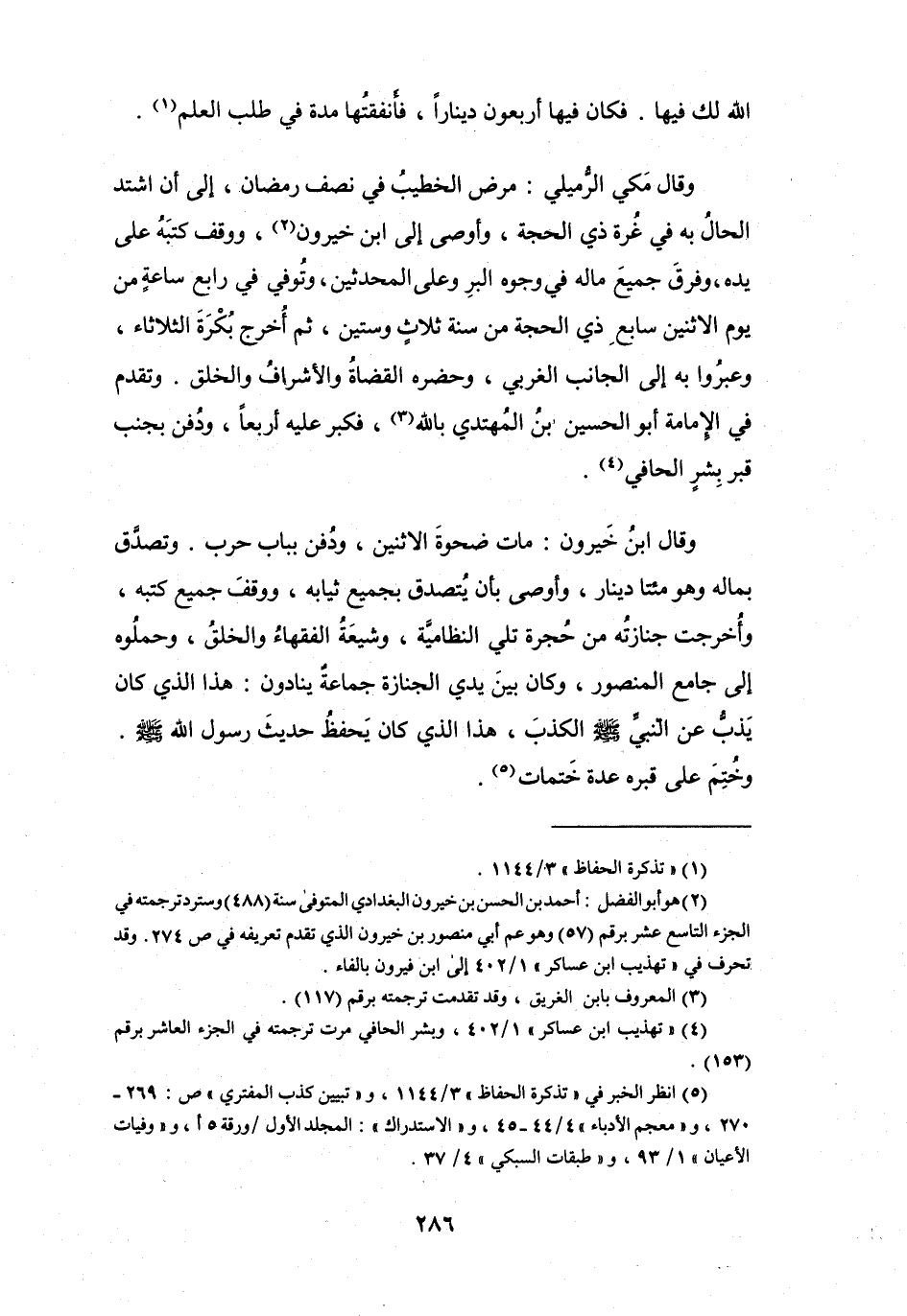 (2) هو أبو الفضل: أحمد بن الحسن بن خيرون البغدادي المتوفى سنة (488) وسترد ترجمته في