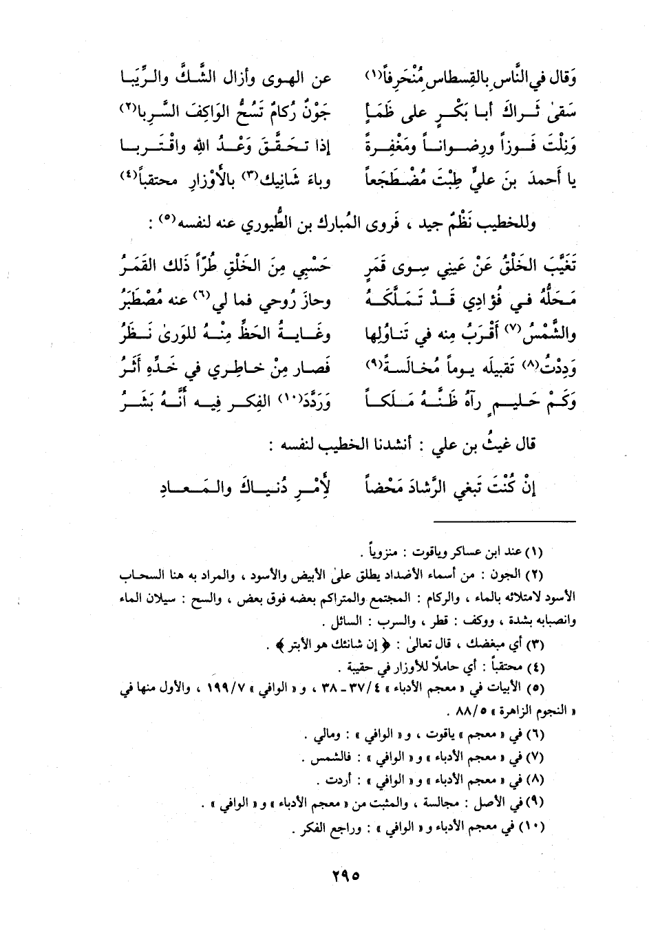 قَالَ غِيثُ بنُ عَلِيّ: أَنشدنَا الخَطِيْب لِنَفْسِهِ: