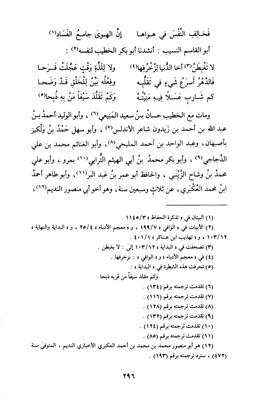 (2) الابيات في " الوافي " 7 / 199، و" معجم الأدباء " 4 / 25، و" البداية والنهاية " 12 / 103، و" تهذيب ابن عساكر " 1 / 401.
