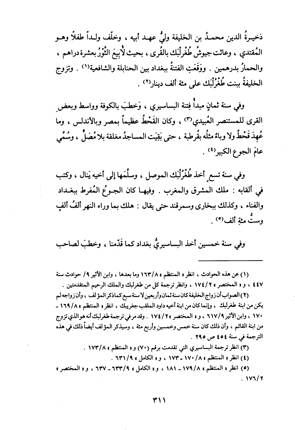 (5) انظر " المنتظم " 8 / 179 - 181، و" الكامل " 9 / 633 - 637، و" المختصر " 2 / 176.