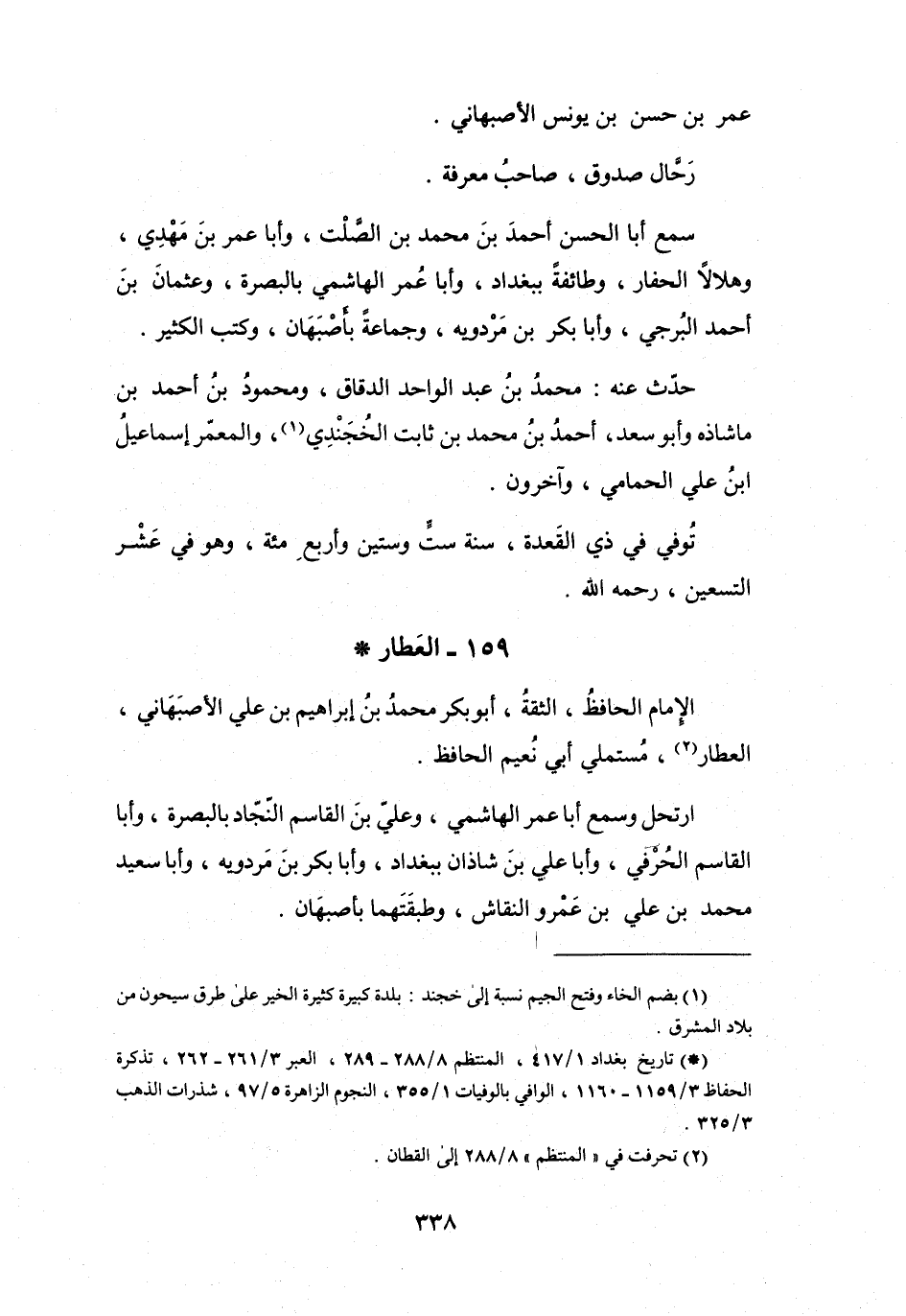 (*) تاريخ بغداد 1 / 417، المنتظم 8 / 288 - 289، العبر 3 / 261 - 262، تذكرة الحفاظ 3 / 1159 - 1160، الوافي بالوفيات 1 / 355، النجوم الزاهرة 5 / 97، شذرات الذهب 3 / 325.