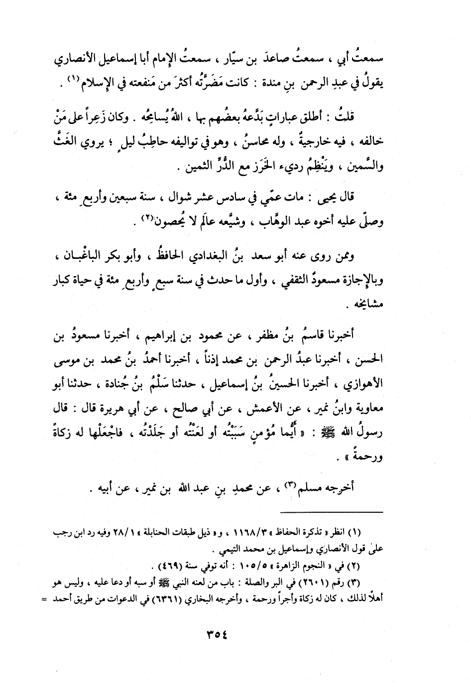 (1) انظر " تذكرة الحفاظ " 3 / 1168، و" ذيل طبقات الحنابلة " 1 / 28 وفيه رد ابن رجب على قول الأنصاري وإسماعيل بن محمد التيمي.