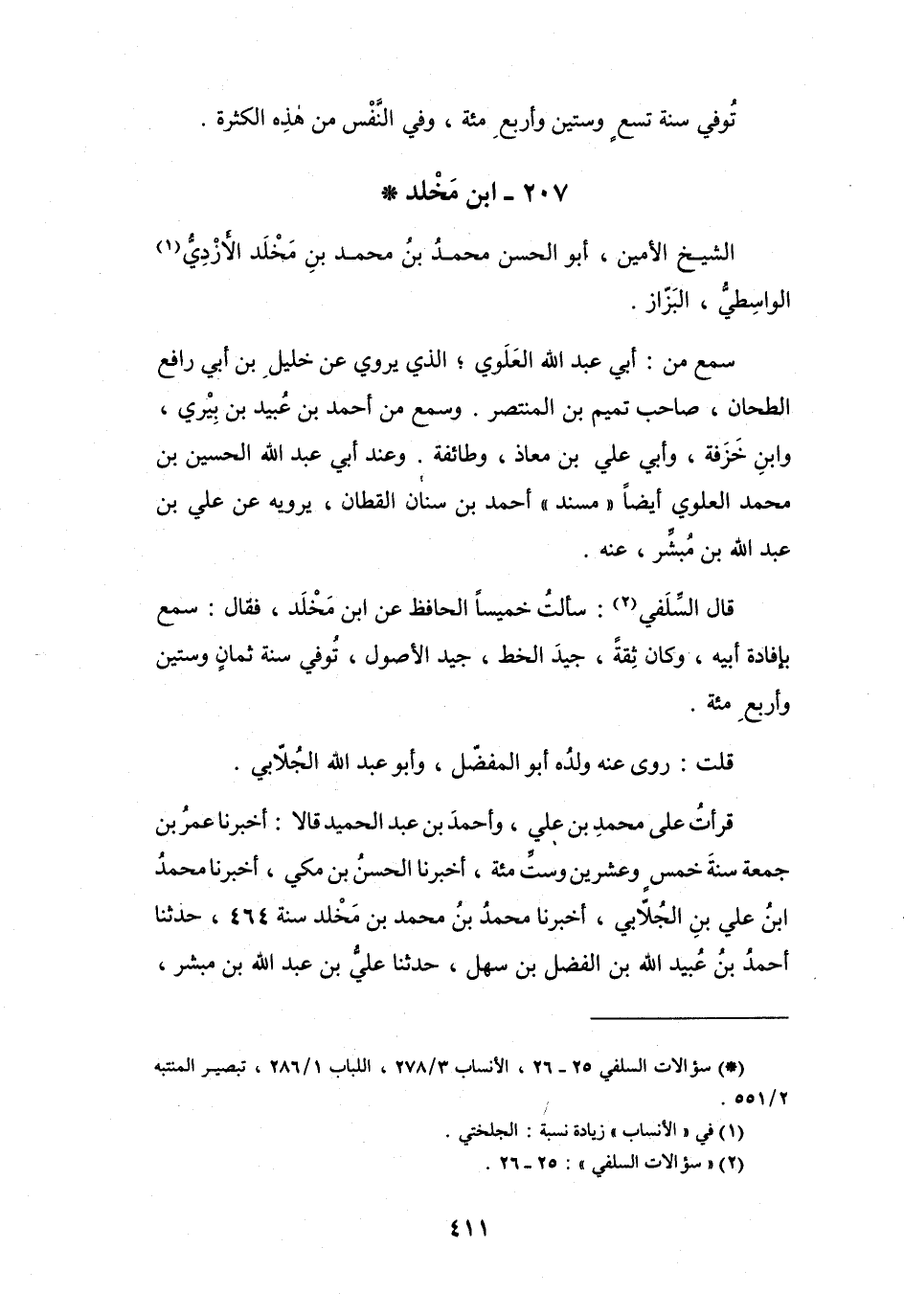 207 - ابْنُ مَخْلَدٍ أَبُو الحَسَنِ مُحَمَّدُ بنُ مُحَمَّدٍ الأَزْدِيُّ *