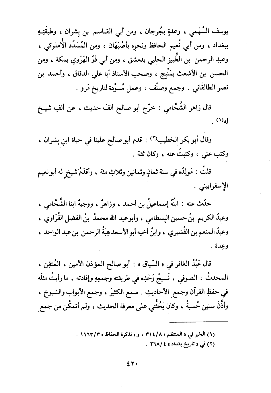 (1) الخبر في " المنتظم " 8 / 314، و" تذكرة الحفاظ " 3 / 1163.