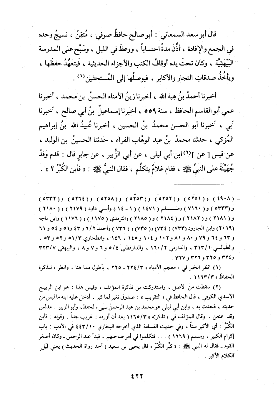 (1) انظر الخبر في " معجم الأدباء " 3 / 224 - 225، بأطول مما هنا، وانظر " تذكرة الحفاظ " 3 / 1163.