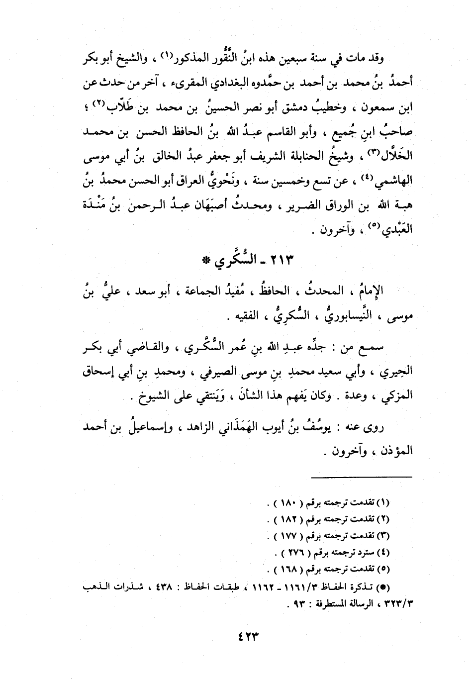 (*) تذكرة الحفاظ 3 / 1161 - 1162، طبقات الحفاظ: 438، شذرات الذهب 3 / 323، الرسالة المستطرفة: 93.