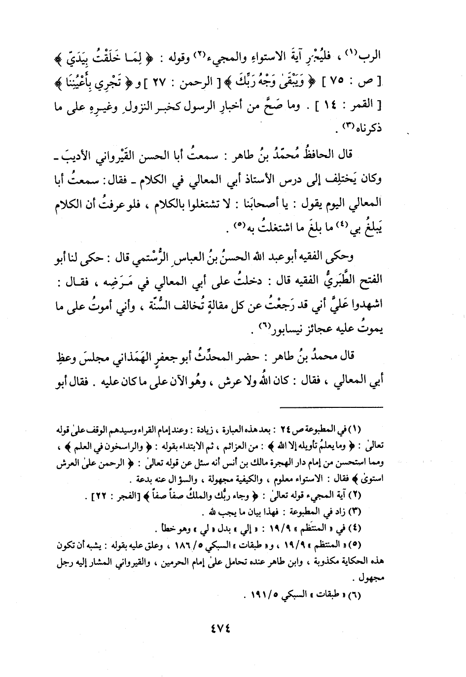 (5) " المنتظم " 9 / 19، و" طبقات " السبكي 5 / 186، وعلق عليه بقوله: يشبه أن تكون هذه الحكاية مكذوبة، وابن طاهر عنده تحامل على إمام الحرمين، والقيروني المشار إليه رجل مجهول.