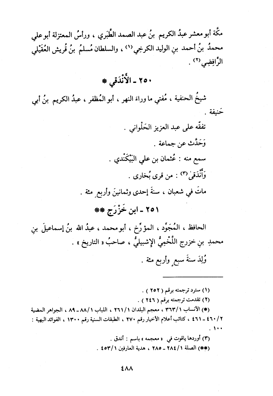 250 - الأَنْدَقِيُّ أَبُو المُظَفَّرِ عَبْدُ الكَرِيْمِ بنُ أَبِي حَنِيْفَةَ *