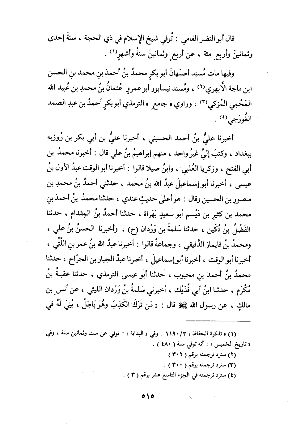 أَخْبَرَنَا أَبُو الوَقْتِ عبدُ الأَوّل بنُ عِيْسَى، أَخْبَرَنَا أَبُو إِسْمَاعِيْلَ عَبْدُ اللهِ بنُ مُحَمَّدٍ، حَدَّثَنِي أَحْمَدُ بنُ مُحَمَّدِ بنِ مَنْصُوْرِ بن الحُسَيْنِ وَقَالَ: