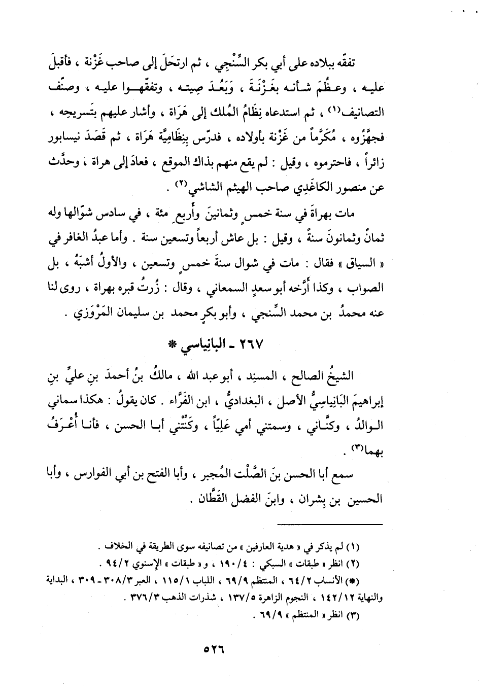 (*) الأنساب 2 / 64، المنتظم 9 / 69، اللباب 1 / 115، العبر 3 / 308 - 309، البداية والنهاية 12 / 142، النجوم الزاهرة 5 / 137، شذرات الذهب 3 / 376.