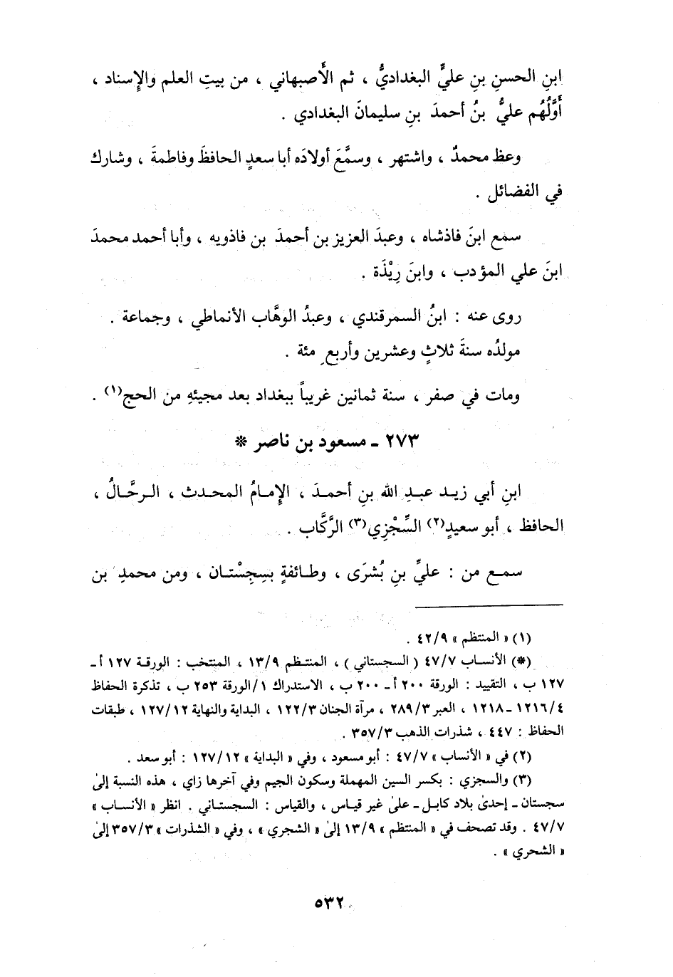 273 - مَسْعُوْدُ بنُ نَاصِرِ بنِ أَبِي زَيْدٍ عَبْدِ اللهِ بنِ أَحْمَدَ السِّجْزِيُّ *
