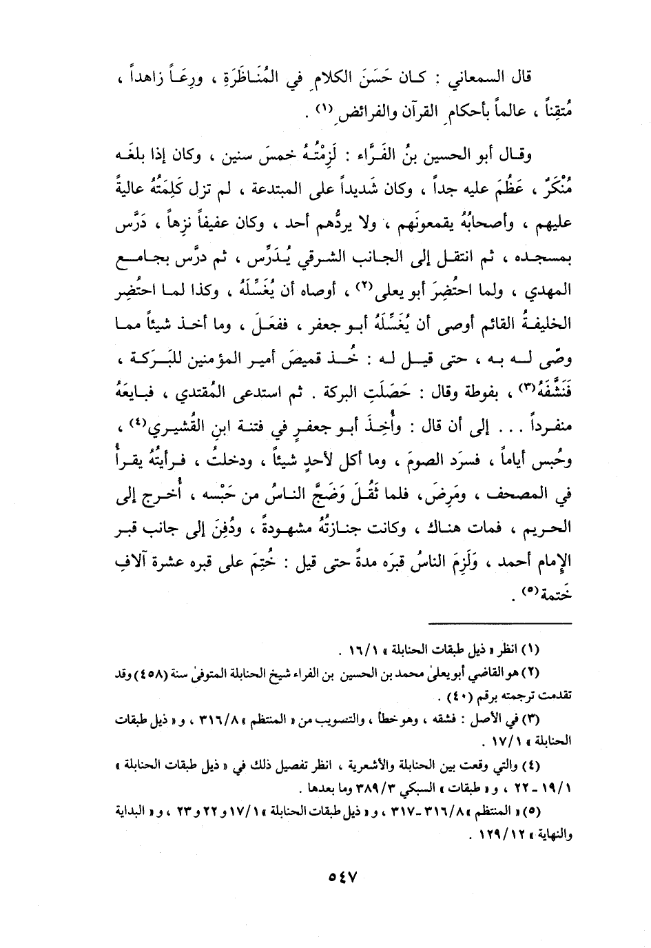 (5) " المنتظم " 8 / 316 - 317، و" ذيل طبقات الحنابلة " 1 / 17 و22 و23، و" البداية والنهاية " 12 / 129.