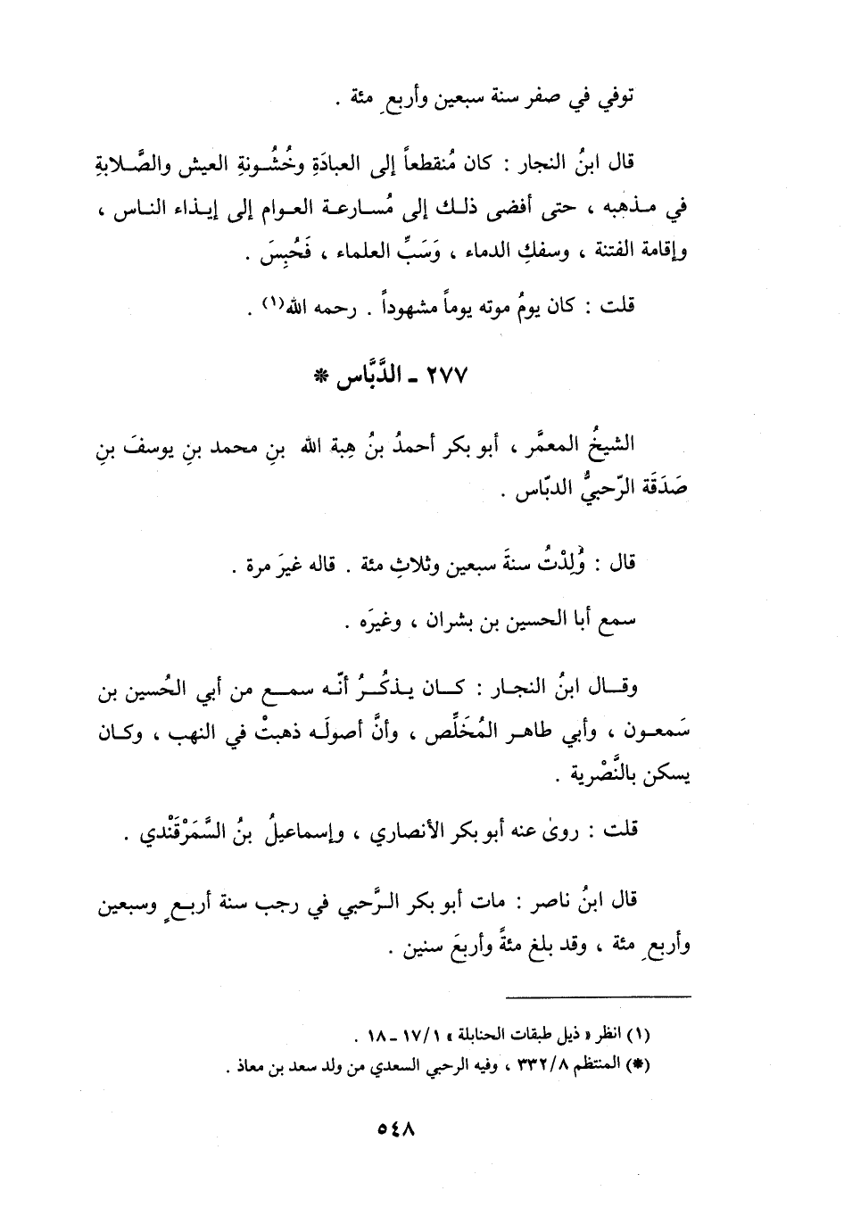 277 - الدَّبَّاسُ أَبُو بَكْرٍ أَحْمَدُ بنُ هِبَةِ اللهِ بنِ مُحَمَّدٍ *