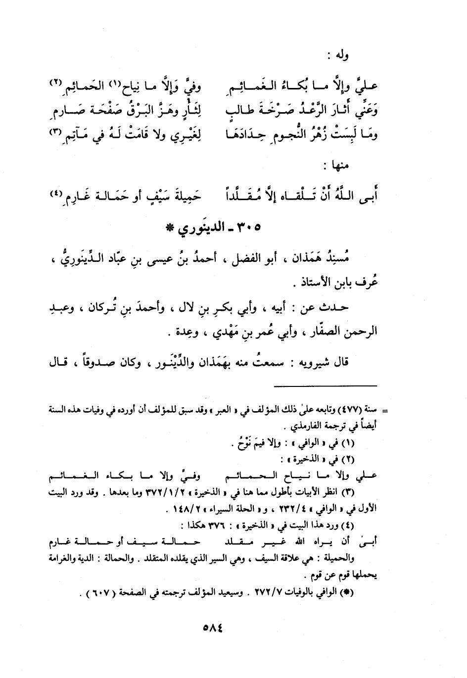 (*) الوافي بالوفيات 7 / 272. وسيعيد المؤلف ترجمته في الصفحة (607) .