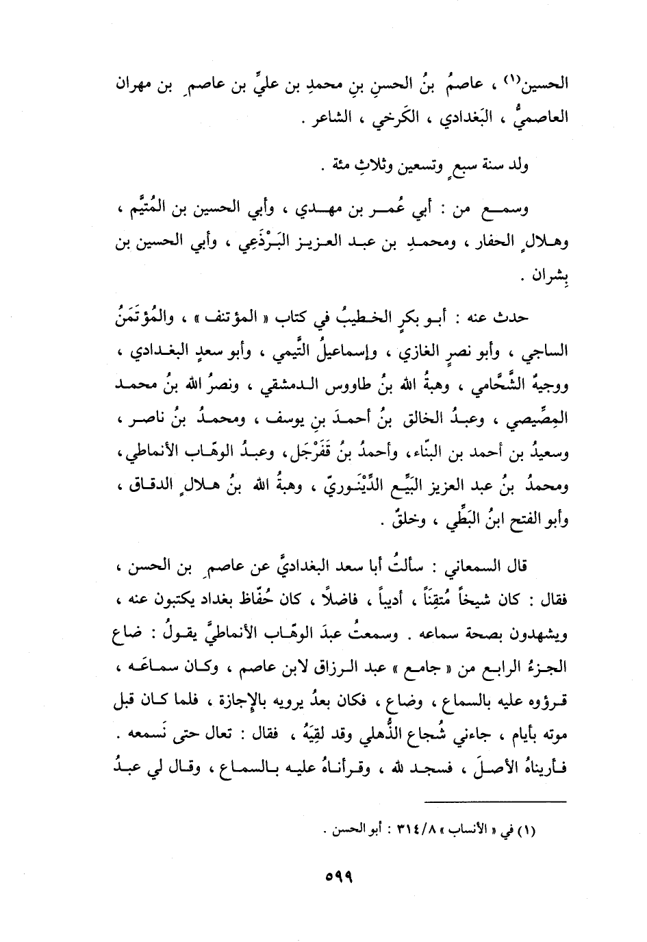(1) في " الأنساب " 8 / 314: أبو الحسن.