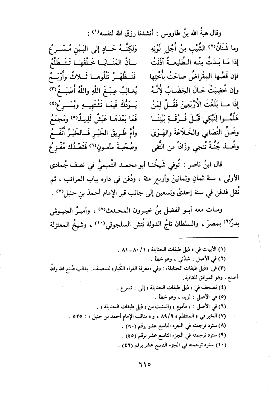 (1) الابيات في " ذيل طبقات الحنابلة " 1 / 80 - 81.