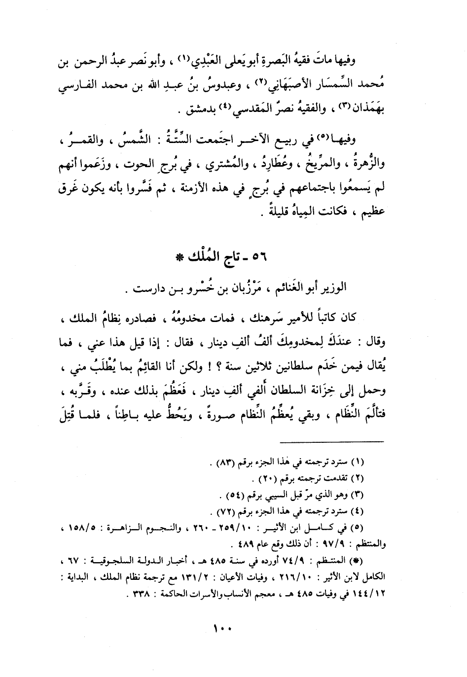 56 - تَاجُ المُلْك أَبُو الغَنَائِمِ مَرْزُبَانُ بنُ خُسْرُو بنِ دَارستَ *