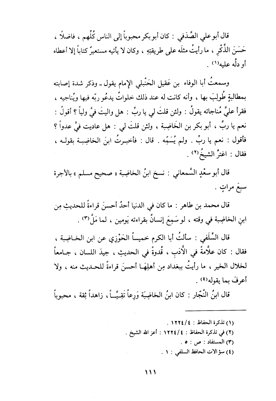 قَالَ: فَأَخْبَرتُ ابْنَ الخَاضبَة بِقَوْلِهِ، فَقَالَ: اغْترَّ الشَّيْخُ (2) .